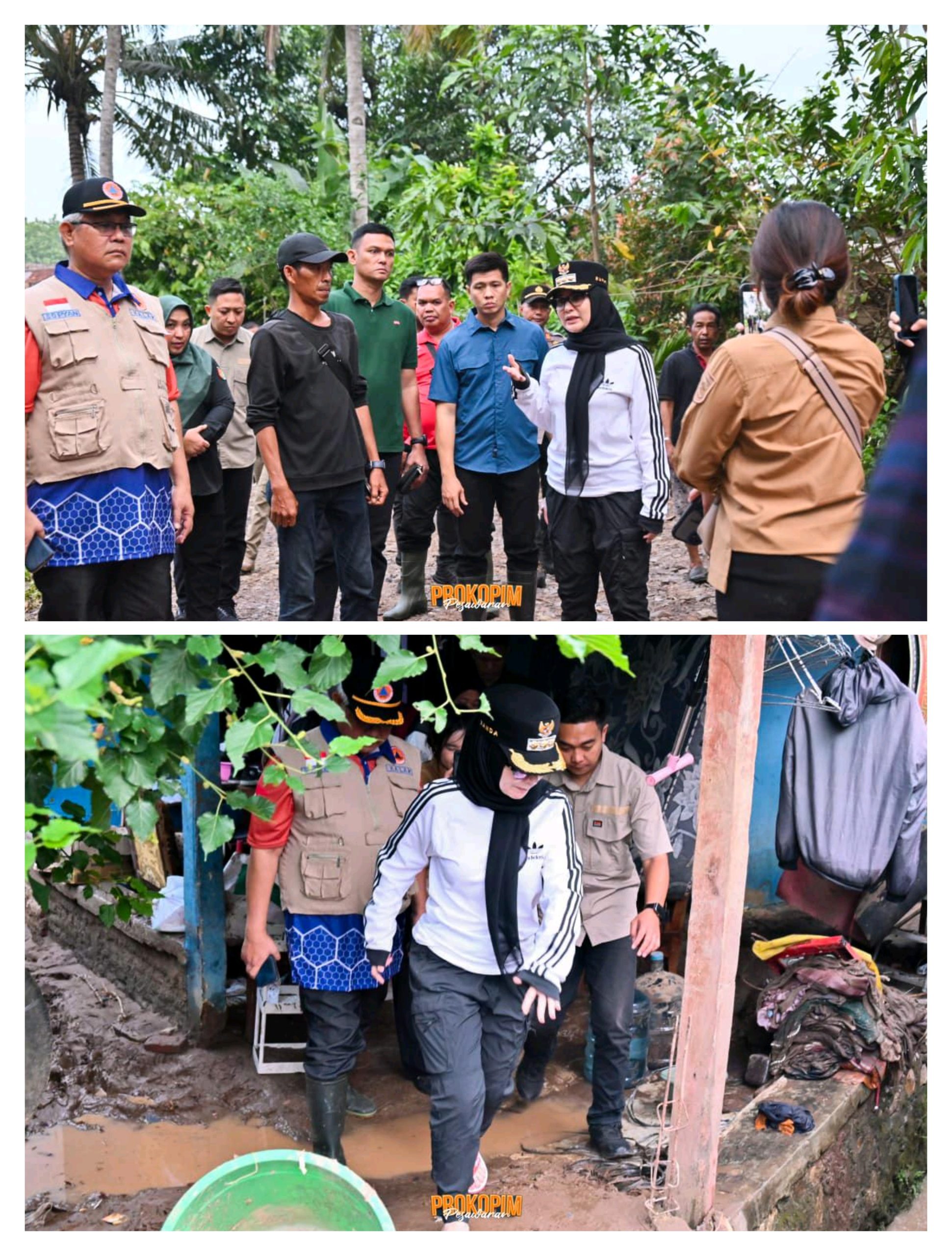 Setelah meninjau lokasi banjir, Bupati Nanda juga menyempatkan diri mengunjungi rumah-rumah warga yang terdampak, sekaligus menginformasikan kepada masyarakat mengenai adanya bantuan berupa air minum, sembako, dan layanan kesehatan tersedia yang bisa diakses masyarakat di posko desa.