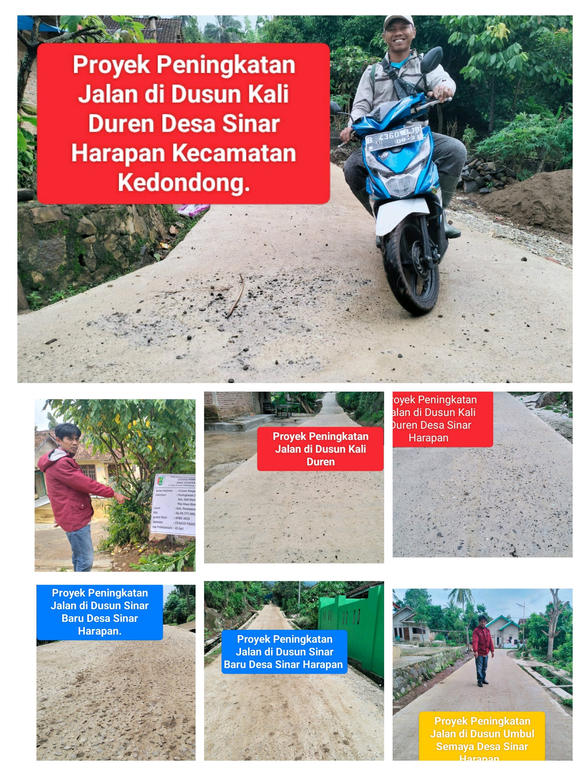 Sedangkan Proyek peningkatan jalan yang ada di dusun kali duren diketahui dikerjakan oleh CV. RAJO PASSEI dengan nilai Rp 99. 777. 000, 00, masa pelaksanaan 45 hari kerja. Proyek ini sudah rampung dikerjakan pada akhir bulan desember tahun 2025 lalu.