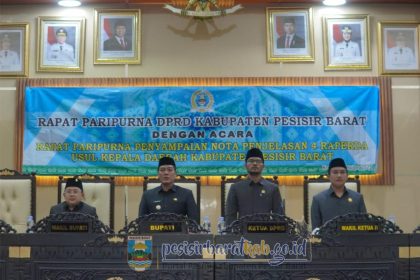Mrcnett.com ~~ Bupati – Wakil Bupati Pesisir Barat (Pesibar), Dedi Irawan – Irawan Topani, S.H., M.Kn., menghadiri rapat paripurna Dewan Perwakilan Rakyat Daerah (DPRD) dengan agenda penya...