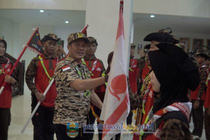 Mrcnett.com ~~ Bupati Pesisir Barat (Pesibar), Dedi Irawan, melepas peserta Jambore Daerah (Jamda) Lampung ke VII Kontingen Kwartir Cabang (Kwarcab) Gerakan Pramuka Pesibar, di Lobi Lantai 1 Komplek P...