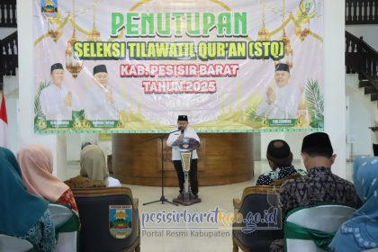 Pesibar — Mediapatriot.id >>> Wakil Bupati Pesisir Barat (Pesibar), Irawan Topani, S.H., M.Kn., resmi menutup pelaksanaan Seleksi Tilawatil Quran (STQ) Tahun 2025, Lobby Teluk Stabas Lantai 1 Gedung M...